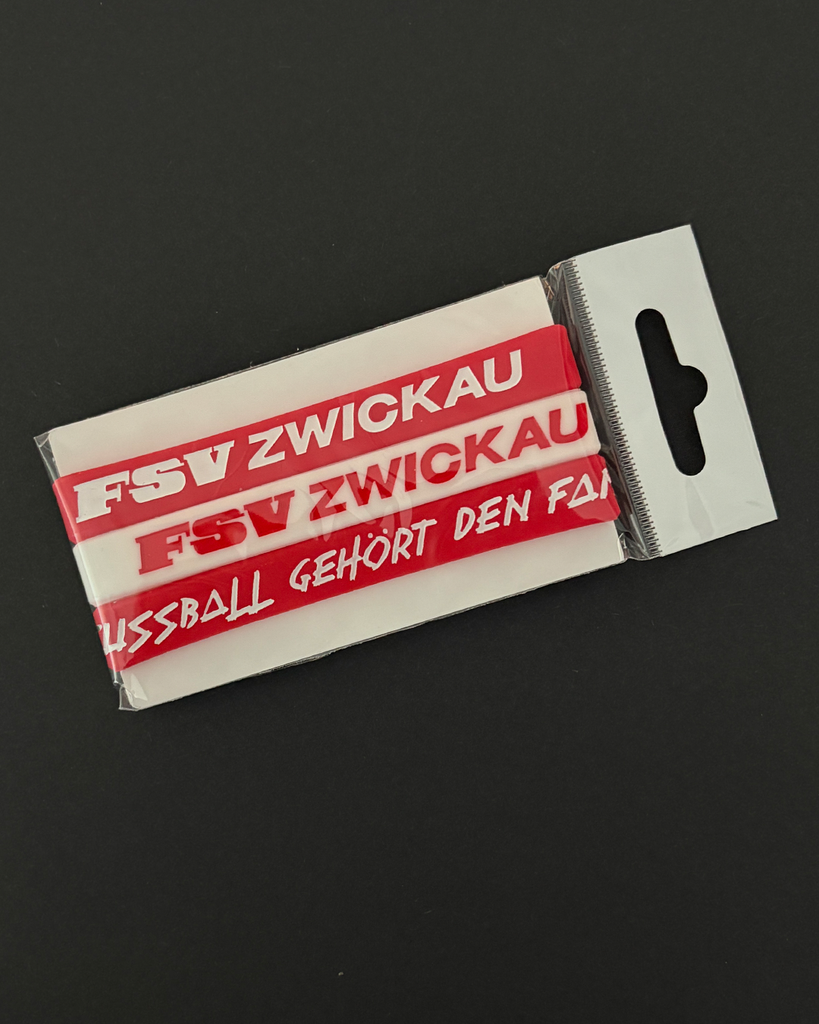 Rot - Weiße Silikonarmbänder mit "FSV Zwickau" Schriftzug aus dem Logo unseres FSV.